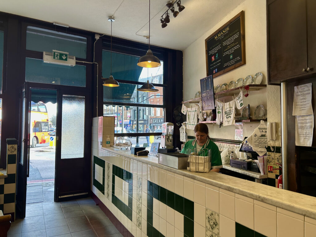 M. Manze est un morceau vivant de l’histoire de Londres. Fondé en 1902 par Michele Manze, un jeune immigrant italien ayant hérité de la boutique de son beau-père, le restaurant est toujours géré par la famille quatre générations plus tard. À son apogée, l’empire Manze comptait quatorze adresses à travers la ville. Il n’en reste aujourd’hui que trois.