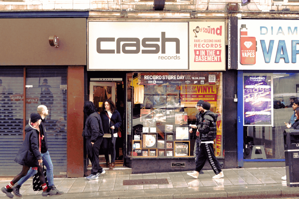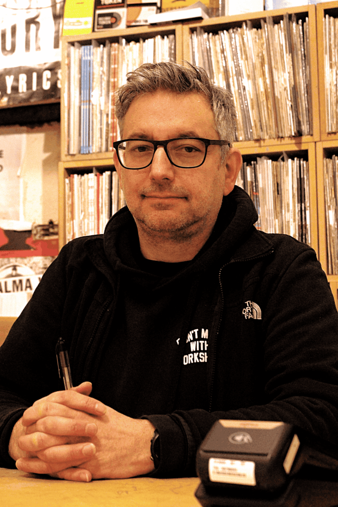 « Leeds est vraiment une ville dynamique, mais je pense que cela tient à la présence des universités et du conservatoire. Ici, c’est assez facile de monter un groupe, de trouver des studios de répétition et de recruter. Beaucoup d’étudiants qui s’installent ici nourrissent ensuite ce milieu musical », raconte Paul Hodgson, 54 ans. Derrière l’iconique devanture jaune du magasin de vinyles Crash Records, posté à son comptoir, Paul, copropriétaire, y travaille depuis plus de 25 ans. « Contrairement à des villes très étendues comme Manchester, où tout est plus fragmenté, ici tout le monde est proche. Nous sommes tous au courant de ce qui s’y passe. » À Leeds, le sentiment de communauté se nourrit aussi d’un héritage musical bien vivant : le 1er mars 2024, Kaiser Chiefs se produisait lors d’un huis clos exclusif pour ses fans, entre les rayons de Crash Records.