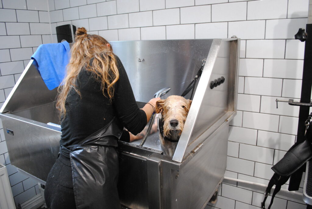 – Non pas du tout, l’eau est chaude. C’est parce qu’il est nerveux », explique Amalia, 23 ans, originaire du Salvador qui travaille à Londres depuis bientôt huit ans. L’emploi de toiletteur canin figurait, encore récemment, sur la liste des métiers en tension au Royaume-Uni.